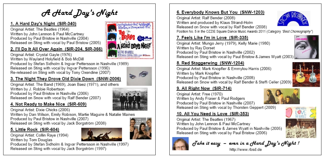 I'm quite happy to present my CDs with square dance singing calls. If you like to have a copy please send me a mail 1)